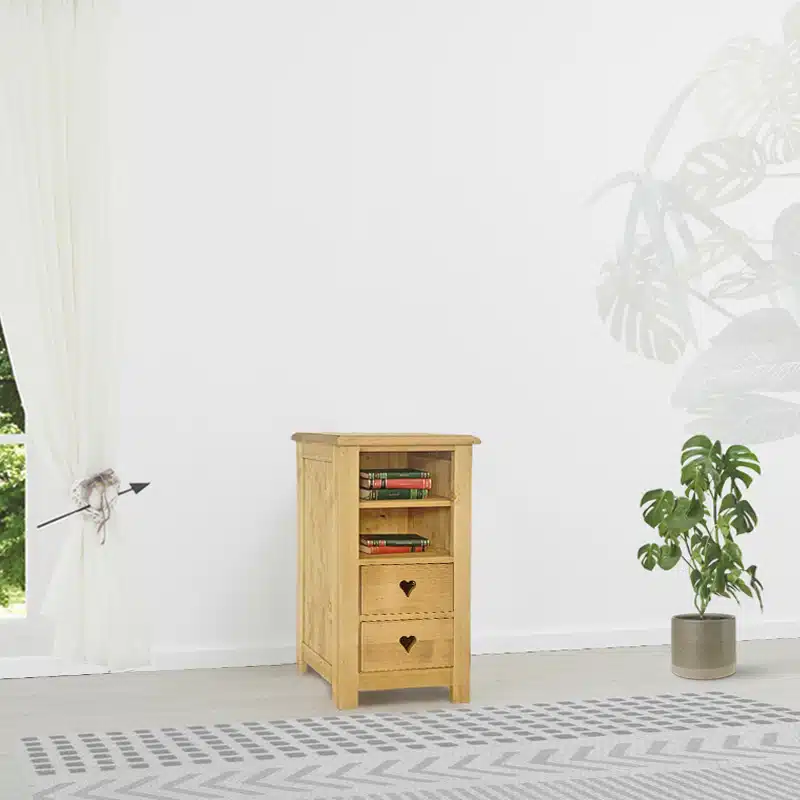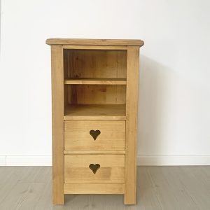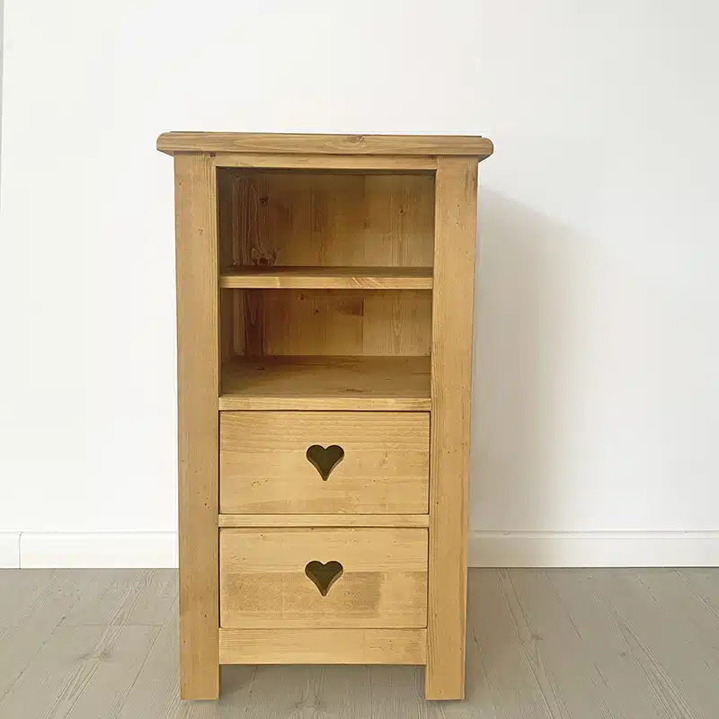 La collezione Megeve evoca il legno nel senso originario del termine. Cuori intagliati tipici di mobili country e rustici tradizionali, la sobrietร dei suoi spessori dร ad ogni ambiente un aspetto accogliente in cui vivere.