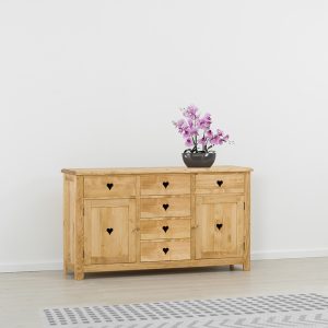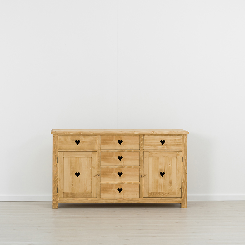 La collezione Megeve evoca il legno nel senso originario del termine. Cuori intagliati tipici di mobili country e rustici tradizionali, la sobrietร dei suoi spessori dร ad ogni ambiente un aspetto accogliente in cui vivere.