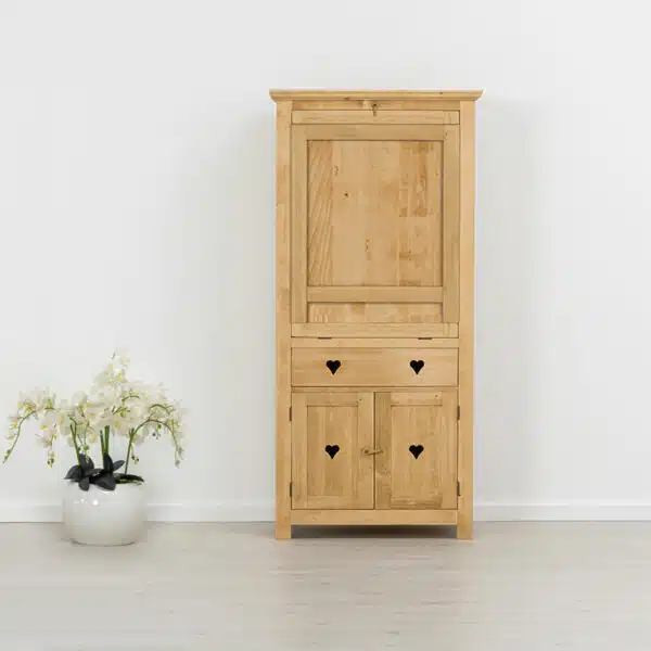 La collezione Megeve evoca il legno nel senso originario del termine. Cuori intagliati tipici di mobili country e rustici tradizionali, la sobrietร dei suoi spessori dร ad ogni ambiente un aspetto accogliente in cui vivere.