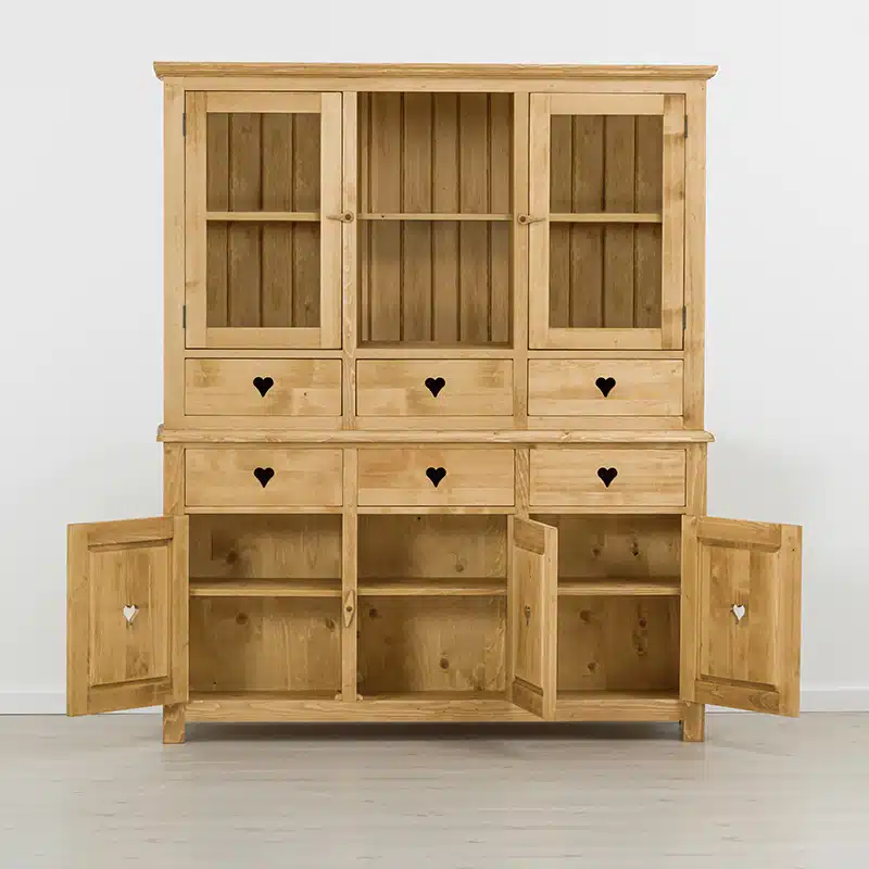 La collezione Megeve evoca il legno nel senso originario del termine. Cuori intagliati tipici di mobili country e rustici tradizionali, la sobrietร dei suoi spessori dร ad ogni ambiente un aspetto accogliente in cui vivere.