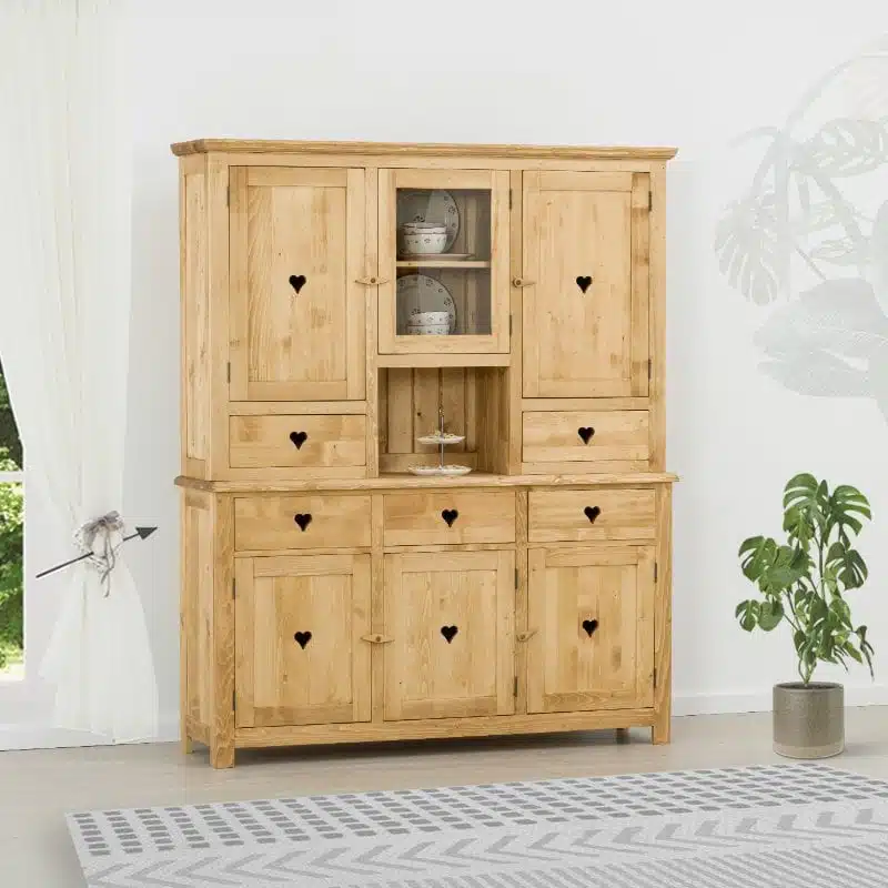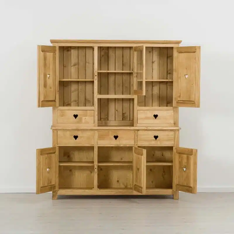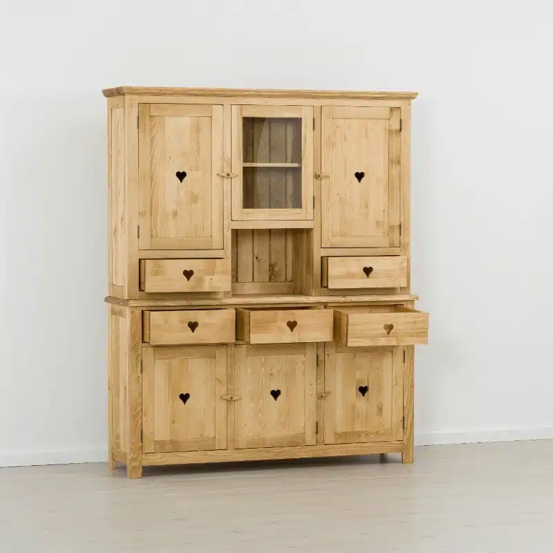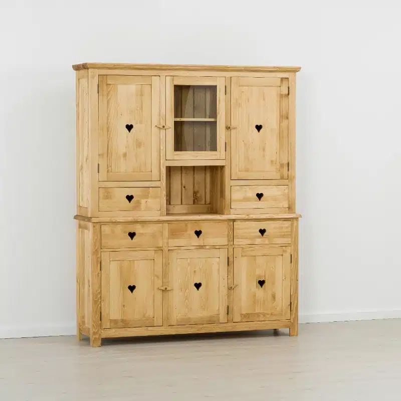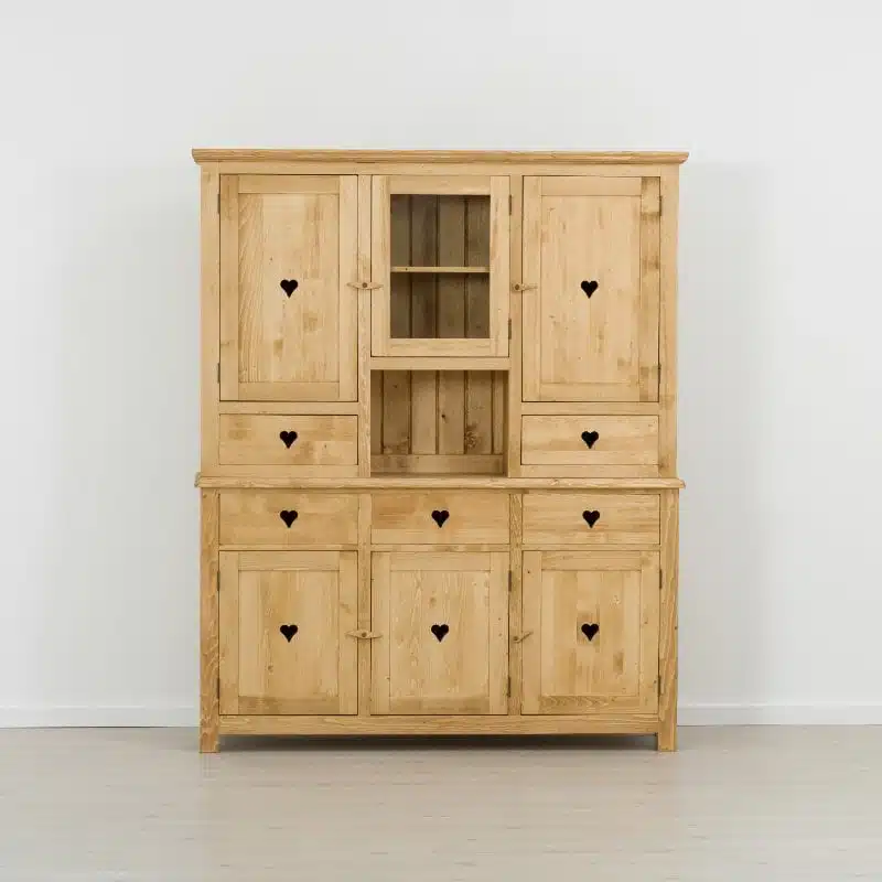La collezione Megeve evoca il legno nel senso originario del termine. Cuori intagliati tipici di mobili country e rustici tradizionali, la sobrietร dei suoi spessori dร ad ogni ambiente un aspetto accogliente in cui vivere.
