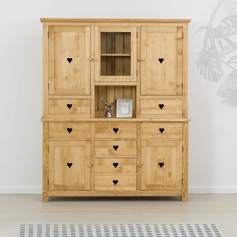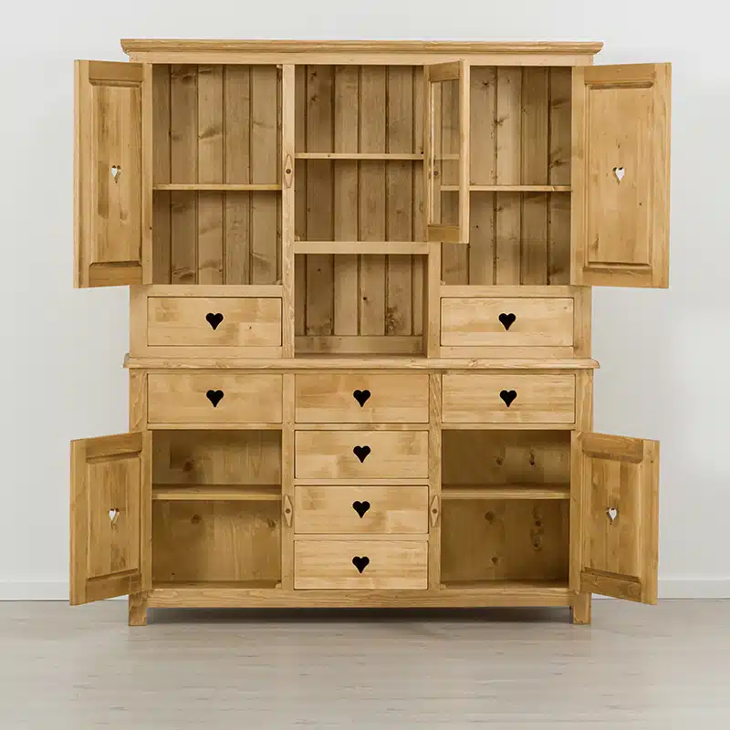 La collezione Megeve evoca il legno nel senso originario del termine. Cuori intagliati tipici di mobili country e rustici tradizionali, la sobrietร  dei suoi spessori dร  ad ogni ambiente un aspetto accogliente in cui vivere.