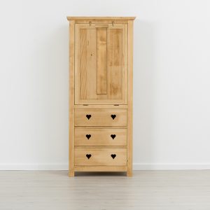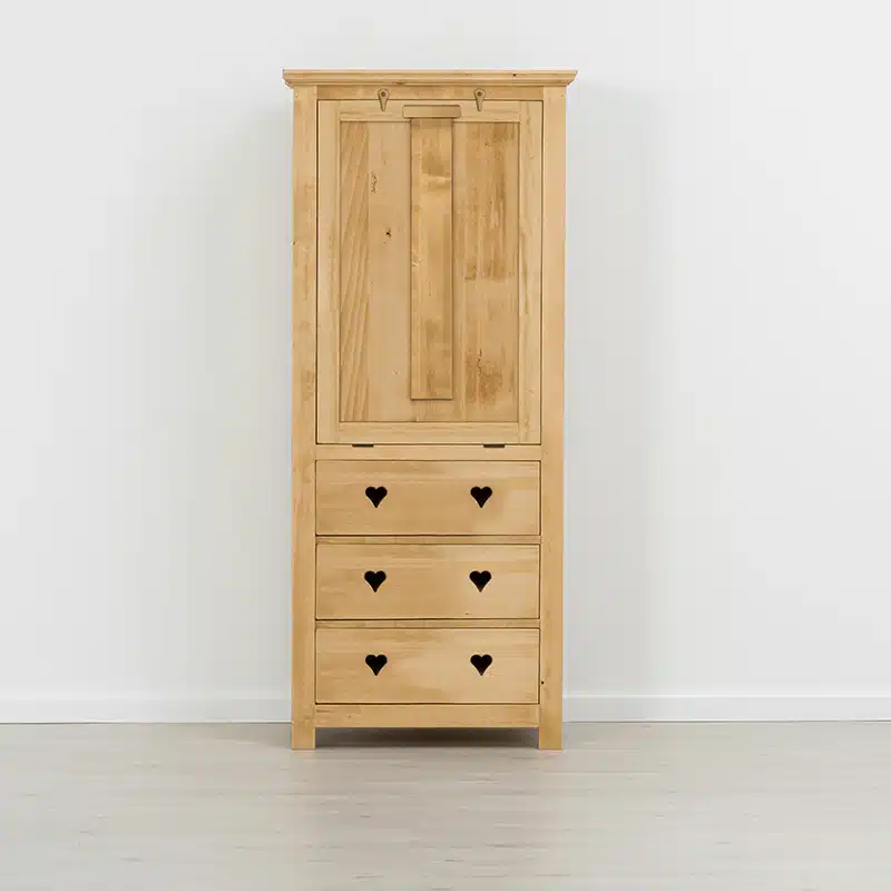 La collezione Megeve evoca il legno nel senso originario del termine. Cuori intagliati tipici di mobili country e rustici tradizionali, la sobrietร dei suoi spessori dร ad ogni ambiente un aspetto accogliente in cui vivere.