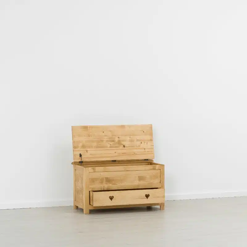 La collezione Megeve evoca il legno nel senso originario del termine. Cuori intagliati tipici di mobili country e rustici tradizionali, la sobrietร dei suoi spessori dร ad ogni ambiente un aspetto accogliente in cui vivere.