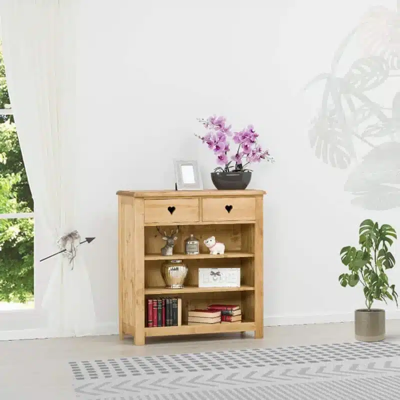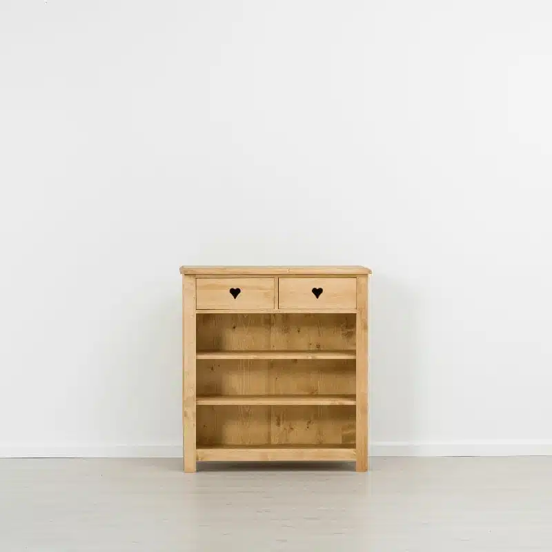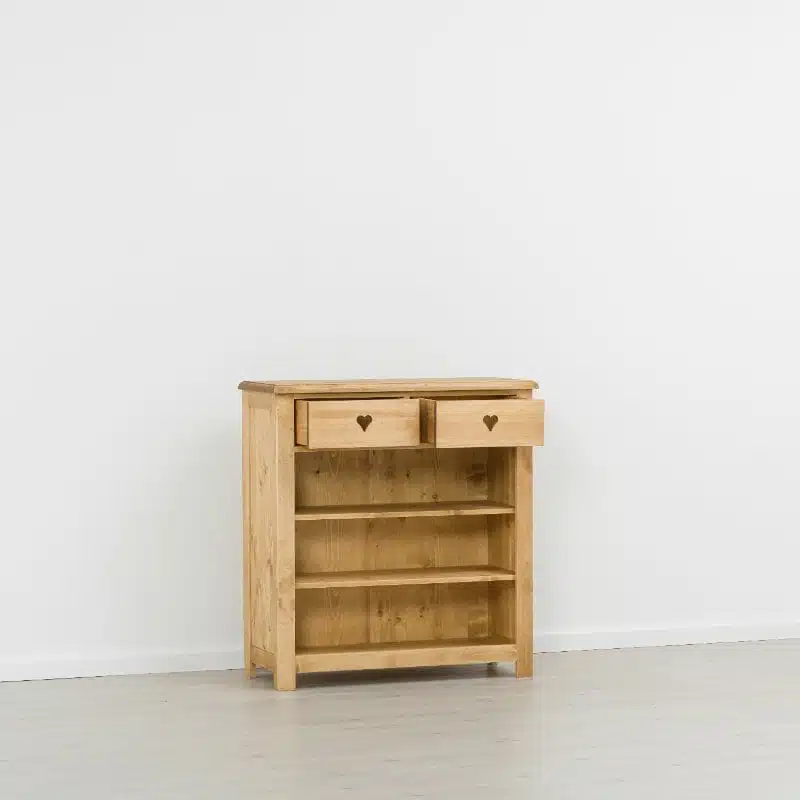 La collezione Megeve evoca il legno nel senso originario del termine. Cuori intagliati tipici di mobili country e rustici tradizionali, la sobrietร dei suoi spessori dร ad ogni ambiente un aspetto accogliente in cui vivere.