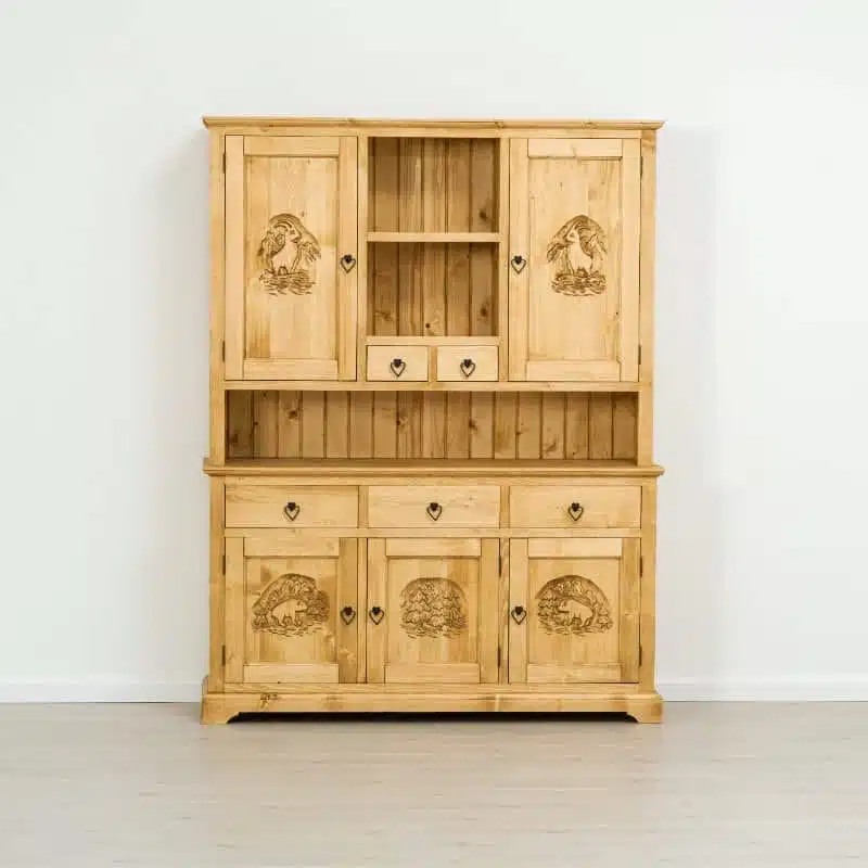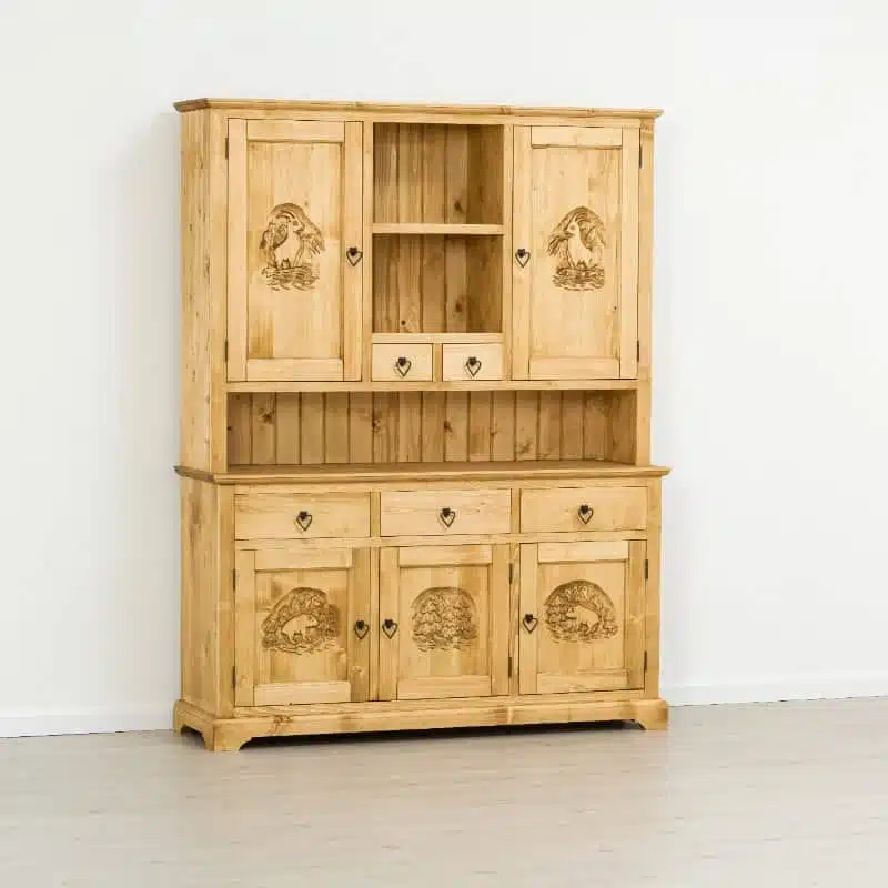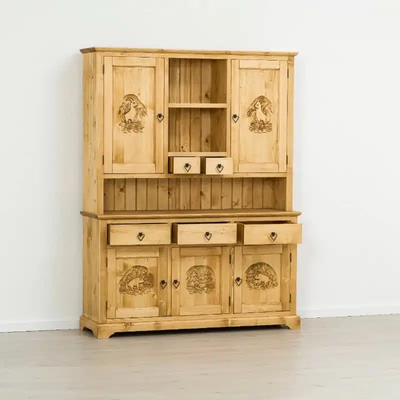 Lโambiente Chalet รจ tipico delle abitazioni di montagna. Lasciatevi incantare dai mobili di questa collezione dalle linee semplici ma impreziosite dagli intarsi fatti rigorosamente a mano e dalle particolari maniglie in ferro.