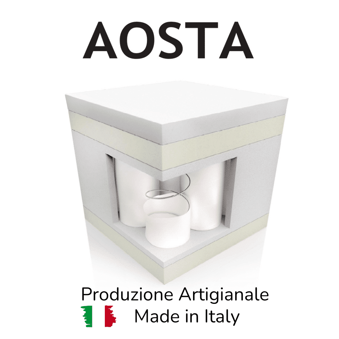 Il materasso Aosta รจ dotato di 400 molle insacchettate (per ogni piazza) con TNT antirumore per un eccellente effetto anatomico, prodotto con Memory e poliuretano a base acqua, senza CFC (Cloro Fluoro Carburi)e una soffice lastra in AIRBLOW capace di annullare qualsiasi accumulo di umiditร .