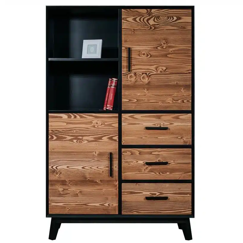 • Materiale: Ante e frontale dei cassetti 100% LEGNO DI ABETE MASSELLO SPAZZOLATO
