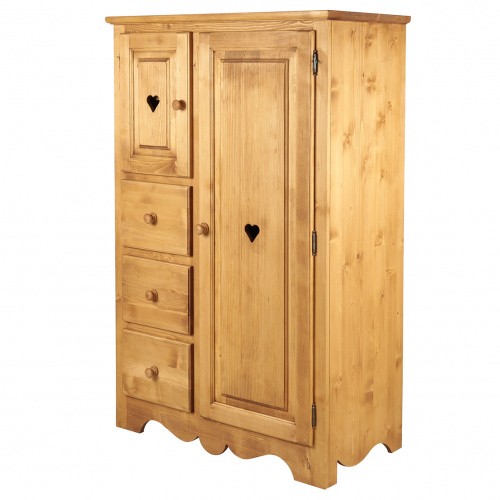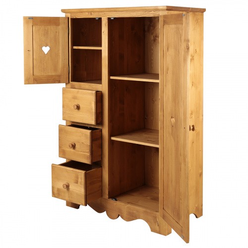 Lโambiente Aosta รจ tipico delle abitazioni di montagna.ย Caratteristiche della collezione sono lo zoccolo lavorato e la presenza di maniglie/pomoli in legno e dei cuori sulle ante. Tutti gli articoli della linea vengono realizzati al 100% in LEGNO MASSELLO di ABETE, non ci sono parti in compensato/truciolare; anche il retro e il fondo dei cassetti.