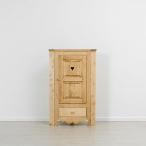 Lโ€™ambiente Chamonix รจ tipico delle abitazioni di montagna.ย Caratteristiche della collezione sono lo zoccolo lavorato e la presenza di maniglie/pomoli in legno e dei cuori sulle ante. Tutti gli articoli della linea vengono realizzati al 100% in LEGNO MASSELLO di ABETE, non ci sono parti in compensato/truciolare; anche il retro e il fondo dei cassetti.