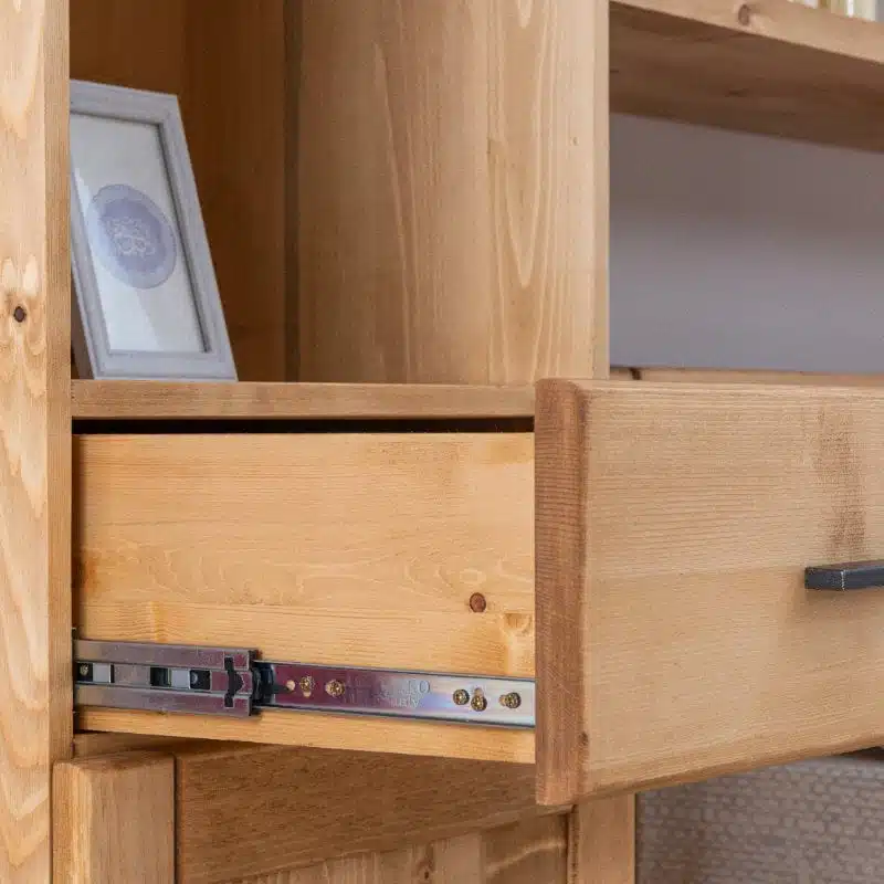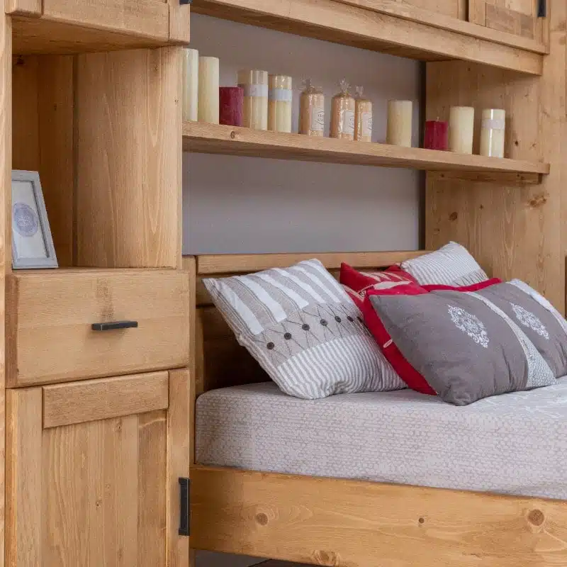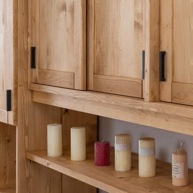Lโambiente Chamonix รจ tipico delle abitazioni di montagna.ย Caratteristiche della collezione sono lo zoccolo lavorato e la presenza di maniglie/pomoli in legno e dei cuori sulle ante. Tutti gli articoli della linea vengono realizzati al 100% in LEGNO MASSELLO di ABETE, non ci sono parti in compensato/truciolare; anche il retro e il fondo dei cassetti.