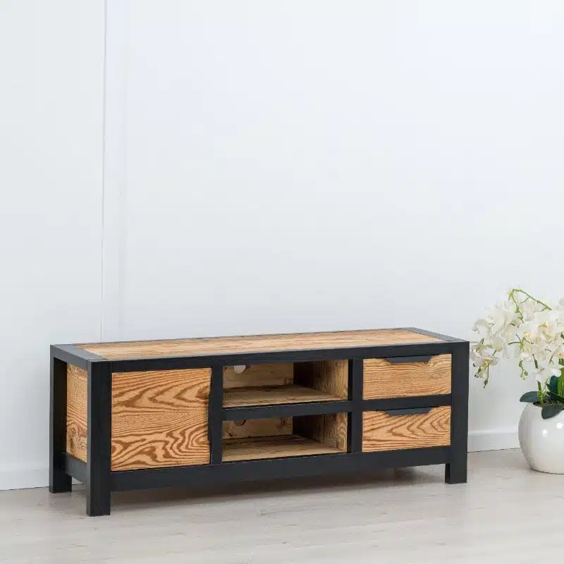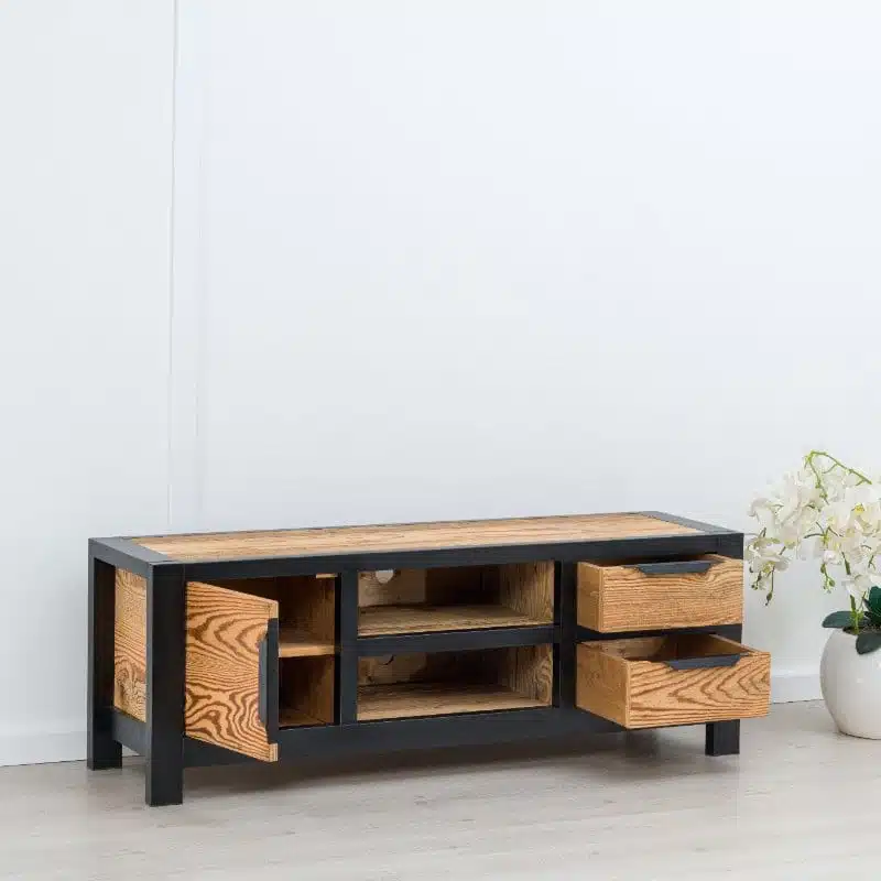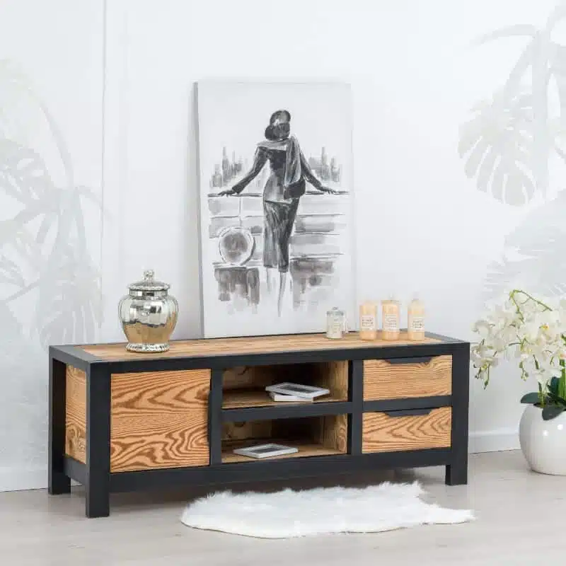 La collezione LOFT combina seducentemente il legno antico con una struttura in melamina nera PAL e maniglie moderne in metallo. Scegliendo la collezione LOFT, opti per arredamenti sia estetici che ecologici. Questa collezione, con i suoi pezzi unici, offre una vera sensazione di ‘industriale, conferendo un carattere speciale e un’autenticità agli interni del tuo spazio, che si tratti di una camera da letto o di un soggiorno.