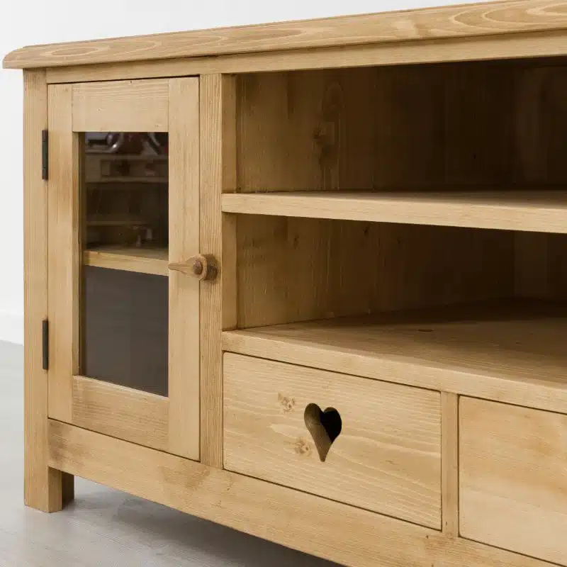 La collezione Megeve evoca il legno nel senso originario del termine. Cuori intagliati tipici di mobili country e rustici tradizionali, la sobrietร dei suoi spessori dร ad ogni ambiente un aspetto accogliente in cui vivere.