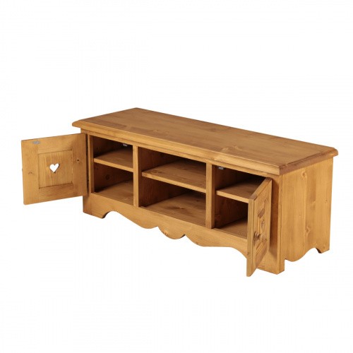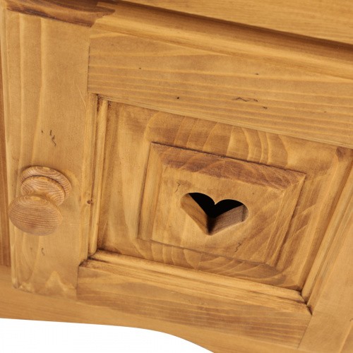Lโambiente Aosta รจ tipico delle abitazioni di montagna.ย Caratteristiche della collezione sono lo zoccolo lavorato e la presenza di maniglie/pomoli in legno e dei cuori sulle ante. Tutti gli articoli della linea vengono realizzati al 100% in LEGNO MASSELLO di ABETE, non ci sono parti in compensato/truciolare; anche il retro e il fondo dei cassetti.