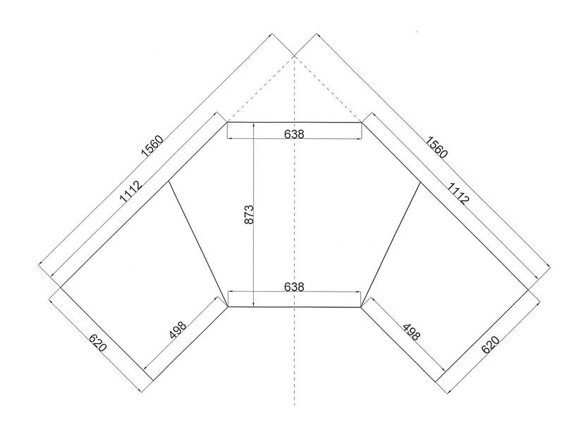 • Dimensioni: ANGOLO 156 x 156 H77 cm